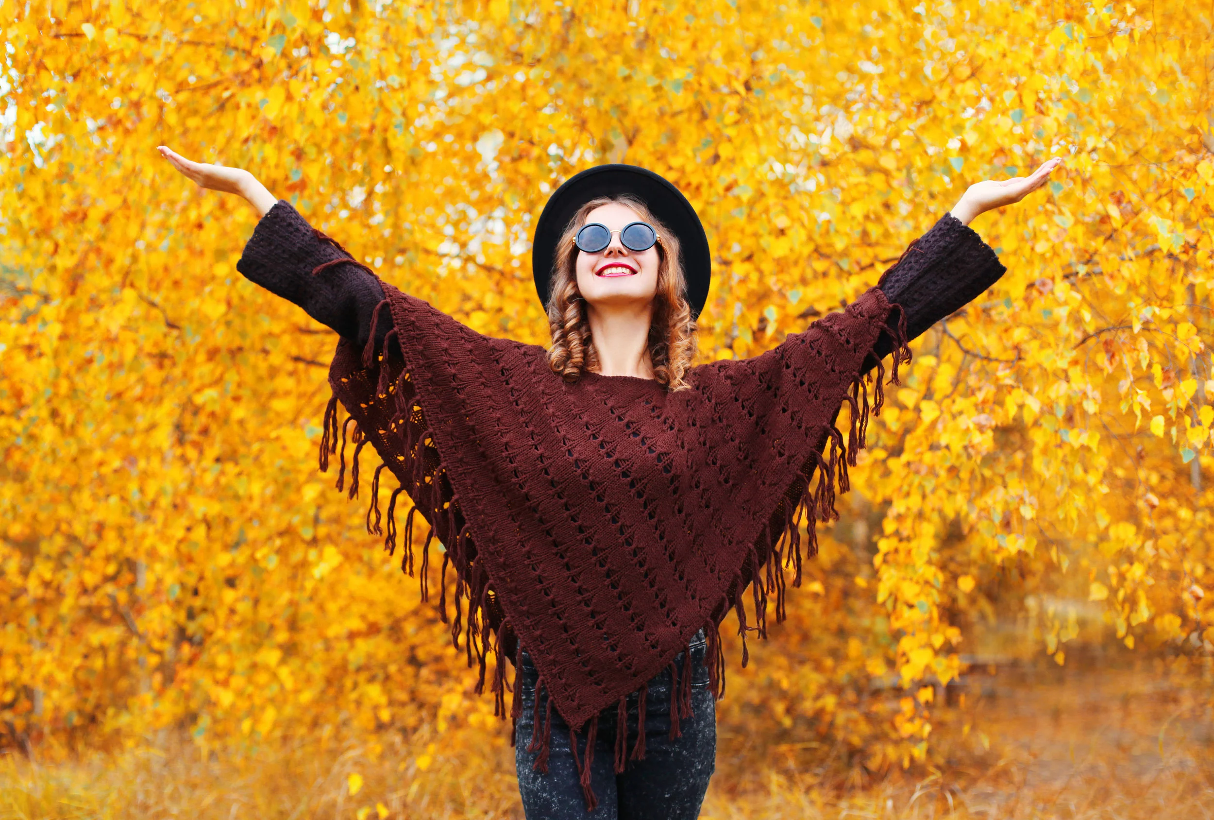 Two years ago, I saw that ponchos were back in style. In that instant, my life was forever changed. My answer to life was in a brilliant fashion statement that I took for granted in the early 1970s. I bought two. I wear them with jeans, with leggings, with skirts, as pajamas. They hide muffin tops and unbuttoned jeans. If I’m having a glorious “skinny day,” they fit. If I’m bloaty, they fit. The fashion industry for mid-life women has been revolutionized. We could have theme ponchos for special occasions. New Year’s Eve? Hangover poncho. Passover? Menorah poncho. Christmas? Santa poncho.